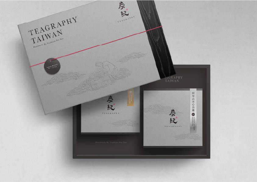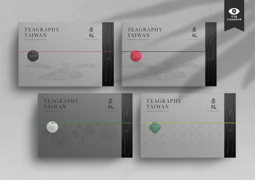 包裝盒採用無油墨的打凸工藝,呈現自然質感,減少化學污染,符合環保理念。整個產品系列的包裝設計統一,採用通用公版禮盒,僅以吊牌區分不同茶品,節省生產和印刷成本,並減少碳排放量。木炭形象以壓紋方式呈現,增加包裝的立體感和觸覺體驗,象徵高品質與獨特工藝