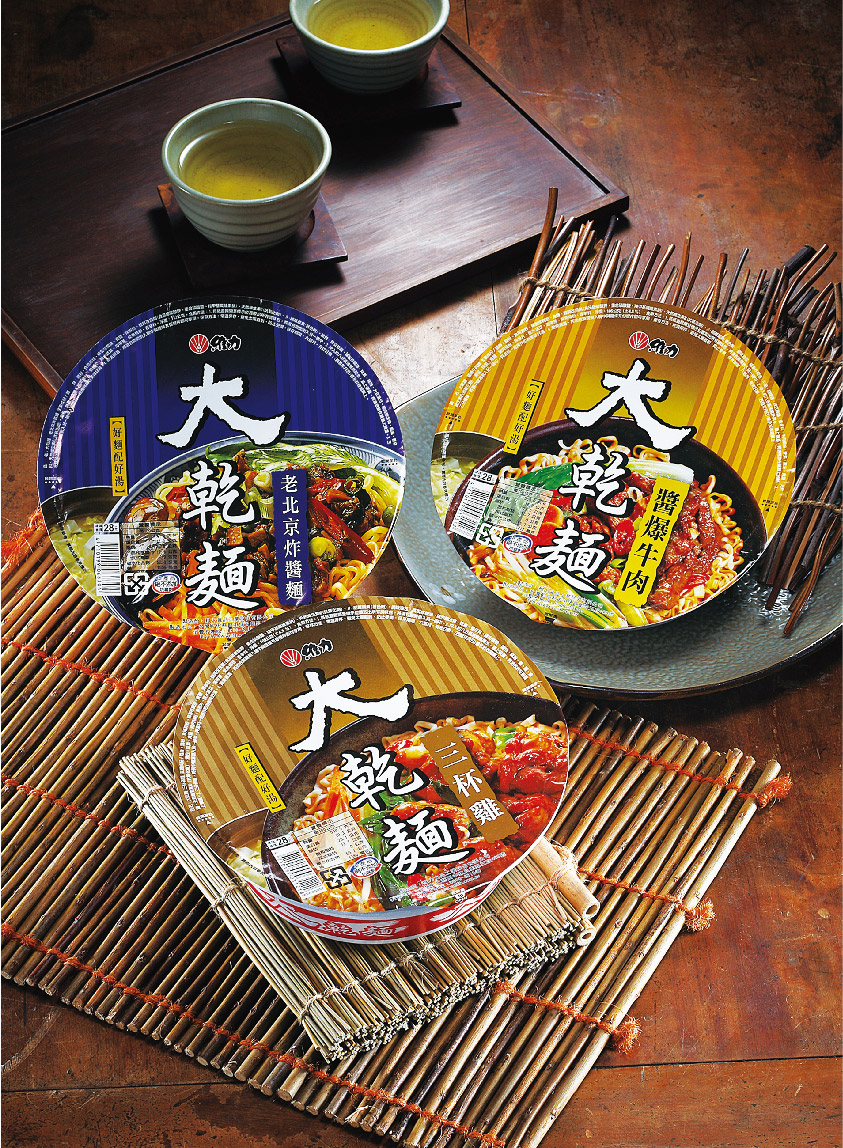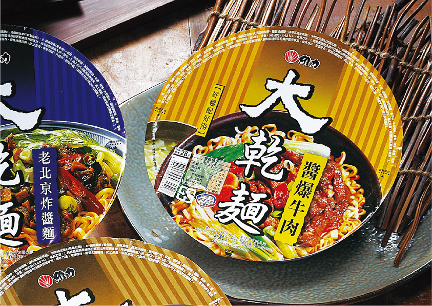 維力食品為台灣第二大廠泡麵品牌,十多年前設計的大乾麵開創了不同的視覺饗宴,在畫面上以大標題、大畫面突破性的設計在市場上一炮而紅,用視覺傳達出好的設計不會隨著時間流逝而落伍,就現代設計的眼光來看,第一代大乾麵的設計簡單大方,令人印象深刻。